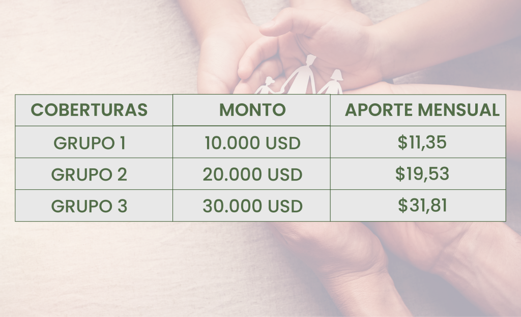 Por cualquiera de esas opciones se indemnizará a la familia por el monto asegurado en caso de fallecimiento del socio.